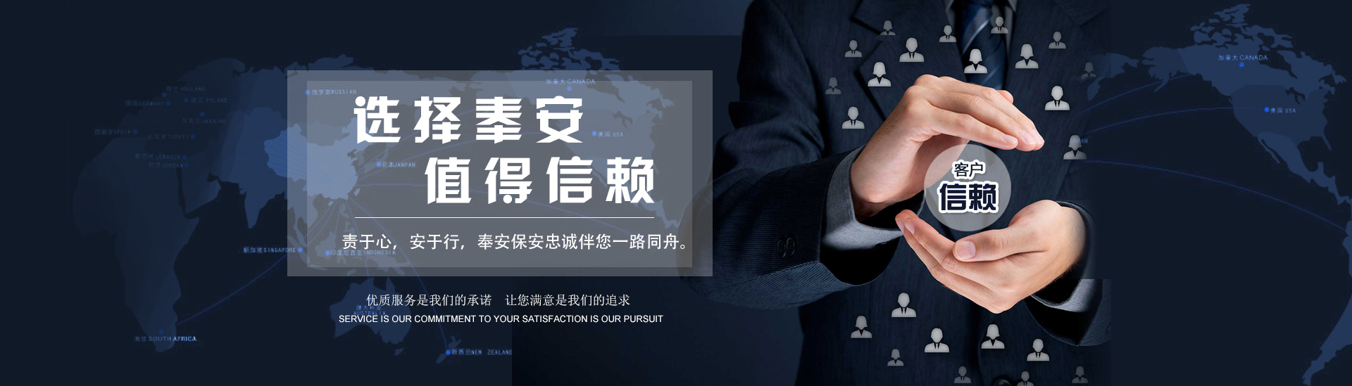 沈陽奉安保安服務(wù)有限公司(原沈陽市沈河區(qū)保安服務(wù)公司)創(chuàng)建于一九八八年八月,是遼寧省公安廳、沈陽市公安局批準(zhǔn),工商行政部門登記注冊,全市首家具備保安資質(zhì)的特殊性服務(wù)企業(yè),隸屬于沈陽市沈河區(qū)政府直管的全民國有企業(yè),現(xiàn)為中國保安協(xié)會會員單位和省保協(xié)、市保協(xié)常務(wù)理事單位:在全市同行業(yè)中率先通過ISO國際質(zhì)量認(rèn)證,是市工商局批準(zhǔn)的“重合同守信用”免檢單位和沈陽市政府采購中心保安服務(wù)項目重點競標(biāo)單位;擁有一支專業(yè)化、標(biāo)準(zhǔn)化、職業(yè)化的高素質(zhì)保安隊伍,是公安機關(guān)重要的輔警力量。
